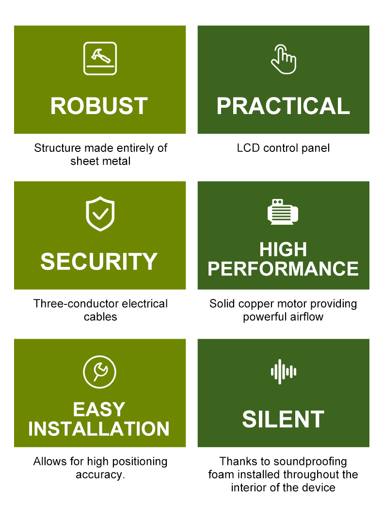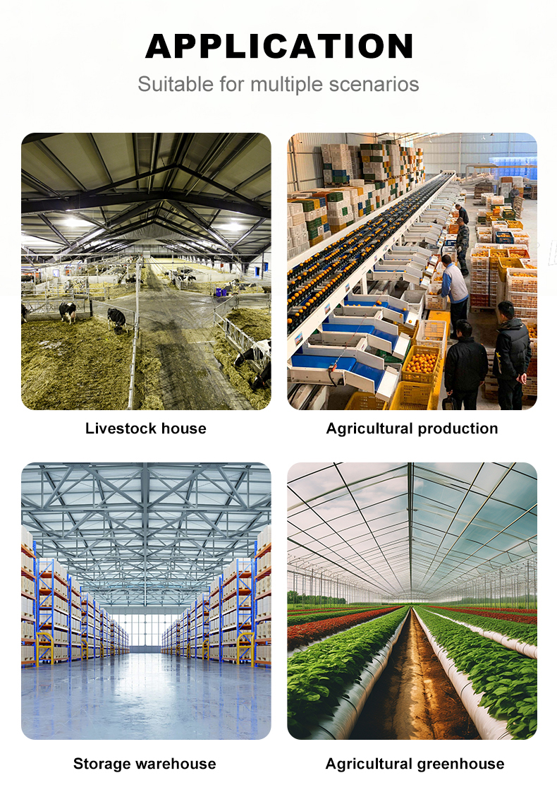 High-performance ventilation in agricultural buildings (subject to compliance with installation conditions). Equipment with intensive operation not intended for individual residential use.