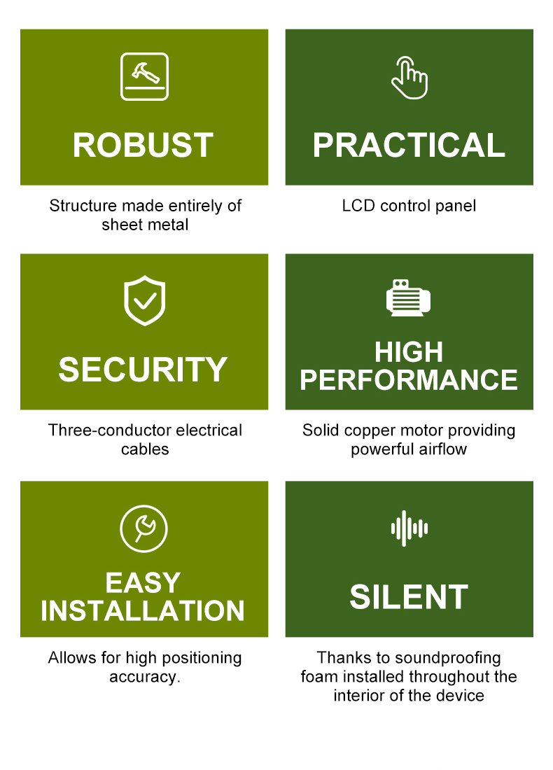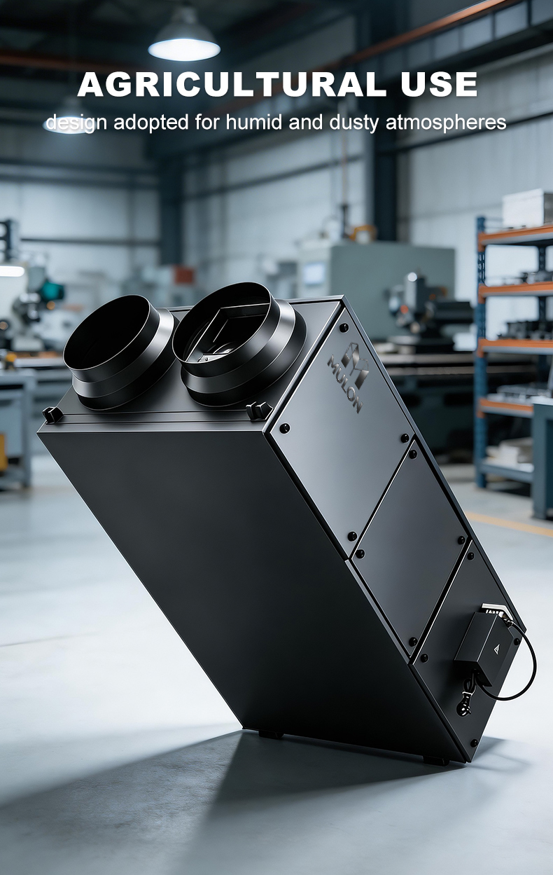Double-flow ventilation system with heat recovery intended for agricultural buildings (livestock buildings, agricultural greenhouses, agricultural production and storage premises). This equipment complies with the technical requirements of the standardized operation sheet CEE AGR-TH-119. The ventilation flow rate is regulated automatically according to needs (temperature, humidity, time programming or sensors).