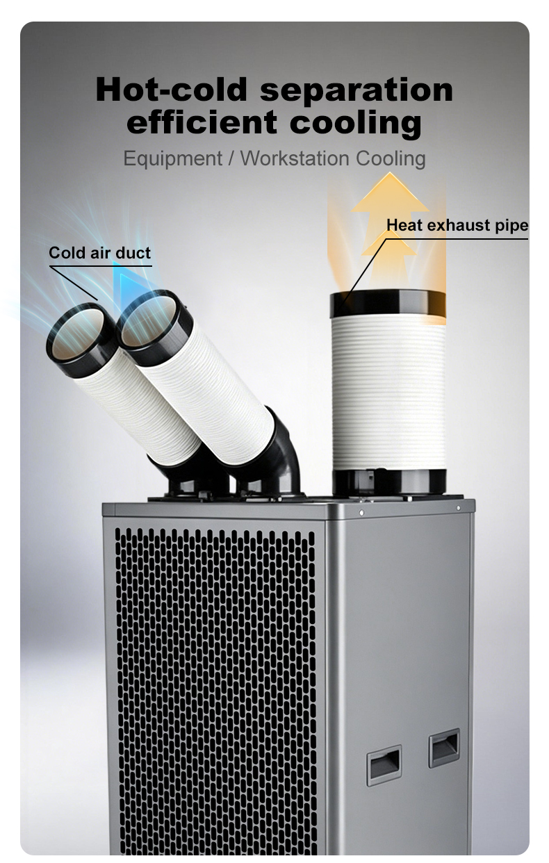 Compact air conditioner for quick commissioning with extremely high cooling capacity. It’s a powerful and reliable unit. It’s ideal for cooling server rooms, production areas, and workstations. The air conditioner is easy to move. No special installation or assembly is required. It’s plug-and-play. Simply plug it in where cooling is needed and vent it outside if necessary.